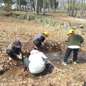 東御市の東御中央公園では、カニ探し🦀