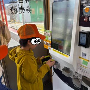切符を買ったり、QRコードをかざしたり、電車に乗る練習ができました。